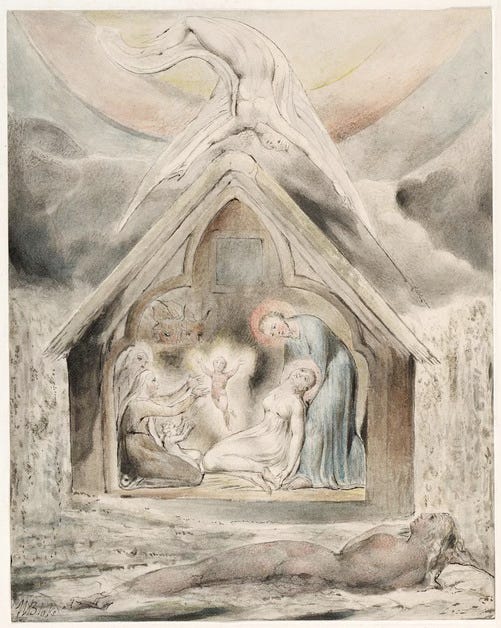 It can feel despondent to realise this clarity was available so long ago and we still make the same mistakes, now amplified by technology. And yet, perhaps Christmas carries the counter-truth Blake trusted: that vision can be reborn at any moment. That imagination still breaks through enclosure. That the divine keeps arriving quietly, asking only that we learn to see again.