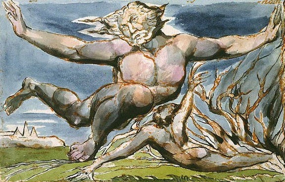 Nothing is ultimately not divine. The only thing wrong is misguided selfhood and narrowed perception. Even Satan, whose “spectrous” single vision can cause havoc, is a passing state of mind, Blake felt, destined for liberation.